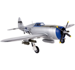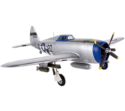 The E-flite® P-47 Razorback 1.2m has been updated and upgraded to be the Smartest and easiest-to-fly scale model of the popular P-47 yet! The airframe is finished in a scheme based on a P-47 that flew with the 510th Squadron, 405th Fighter Group during World War II, and it features a variety of scale details, including molded-in panel lines, an optional-use drop tank and armament, a four-blade propeller and more. Plus, its functional flaps and retractable landing gear add to the scale flying experience. The 3S and 4S compatible power system includes an upgraded 70A Spektrum™ Avian™ Smart Lite ESC, and the BNF® Basic version is equipped with an AR631 receiver to deliver real-time telemetry data along with AS3X® and optional-use SAFE® Select technologies. No glue is required for final assembly, so you can have it ready to fly in less time than it takes to charge a battery, plus it's conveniently sized for storage and transport without disassembly – or the one-piece wing is easy to remove/install for even easier transport and storage. And it all adds up to deliver features, handling, and performance that make it an excellent choice for intermediate and first-time warbird to experienced pilots! Features
