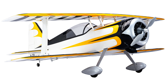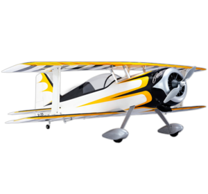 The E-flite® Pitts Model 12 15e ARF is a 3D-capable, sport replica of one of aviation’s hottest aerobatic machines. Designed by veteran world class competitor, Quique Somenzini, it will give intermediate to expert pilots a thrilling scale aerobatic experience unlike any other. The large wing area and light wing loading of its biplane design offers very forgiving flight characteristics while keeping roll response crisp and precise.E-flite’s Power 15 and Power 25 brushless outrunner motors are excellent power choices, depending on your skill level. Sport aerobatics or stick-bending 3D, the Pitts Model 12 15e will do whatever you ask and will look good doing it.
