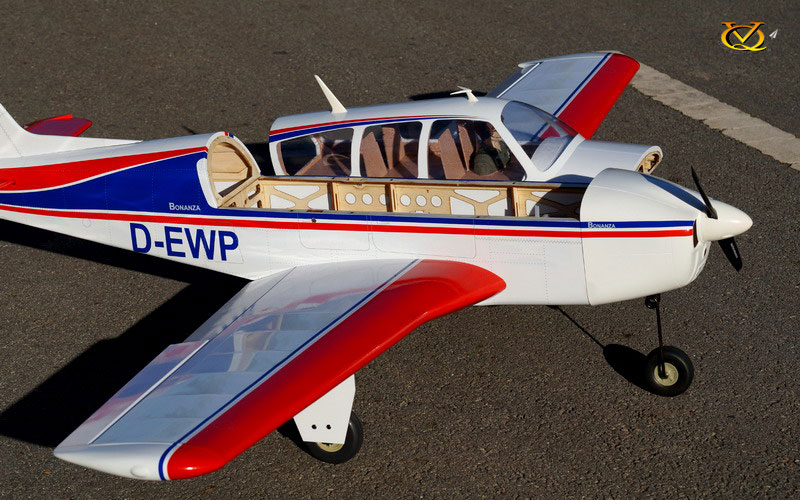 The Beechcraft Bonanza is an American general aviation aircraft introduced in 1947 by Beech Aircraft Corporation of Wichita, Kansas. The six-seater, single-engine aircraft is still being produced by Beechcraft and has been in continuous production longer than any other airplane in history. More than 17,000 Bonanzas of all variants have been built, produced in both distinctive V-tail as well as conventional tail configurations. Now, VQ Introduces the Beech Bonanza 46 size EP-GP. This Bonanza comes with 2 scale flap, 1 x painted pilots, platic antena, plywood seat. Also we have supply in the kit some scale detail make by ply wood sothat you can make your Bonanza look like a real one . With the big battery hatch, you can use both Electric motor or Nitro engine . As an option , the Electric retracts with struts (VQ-ARE13S) or Electric retracts with nose gear struts only (VQ-ARE14) is good choise for this Bonanza, it makes this Bonanza become one of the best Balsa scale 46 size EP-GP in the market.