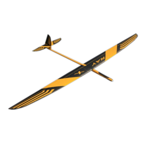 As a sport or competition model it has great flight characteristics, especially in flat field thermal conditions, but also preforms very well as a slope glider. The Ray X has a slim fuselage, with a 30mm spinner size for electric motors. The model is made with a wingspan of 3820mm and 4000mm and with X tail full floating elevator.