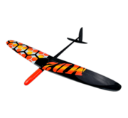 The wing is all molded from spread carbon or glass, depending upon the layup chosen, over a solid XPS foam core. The fuselage (also made from carbon or glass, to match the wing) is a one piece design with a very good sized nose and a slip-on nosecone. Removing this reveals a very large space (approx 120 x 30 x 22mm) for installing the RC, which makes for a very easy installation - probably the easiest of any DLG we sell. The front portion of the fuselage and nosecone are made of glass (in both versions) so are 2.4GHz friendly. The rear of the fuselage sports a carbon pylon for mounting the tailplane, and the rear of the boom is ready-slotted to take the fin. Both the tail surfaces are lightweight fully molded items, either carbon or glass, to match the wing. The carbon fuselage and tails are all back, and the glass ones are all white.